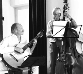 Langjährige Erfahrungen in diversen Musikrichtungen prägen das Zusammenspiel der beiden Ausnahmegitarristen. Ihr umfangreiches Repertoire aus Latin Jazz, Gypsy Swing, Jazzstandards und dem ein oder anderen Popsong, sorgt für ein abwechslungsreiches und beschwingtes Programm.